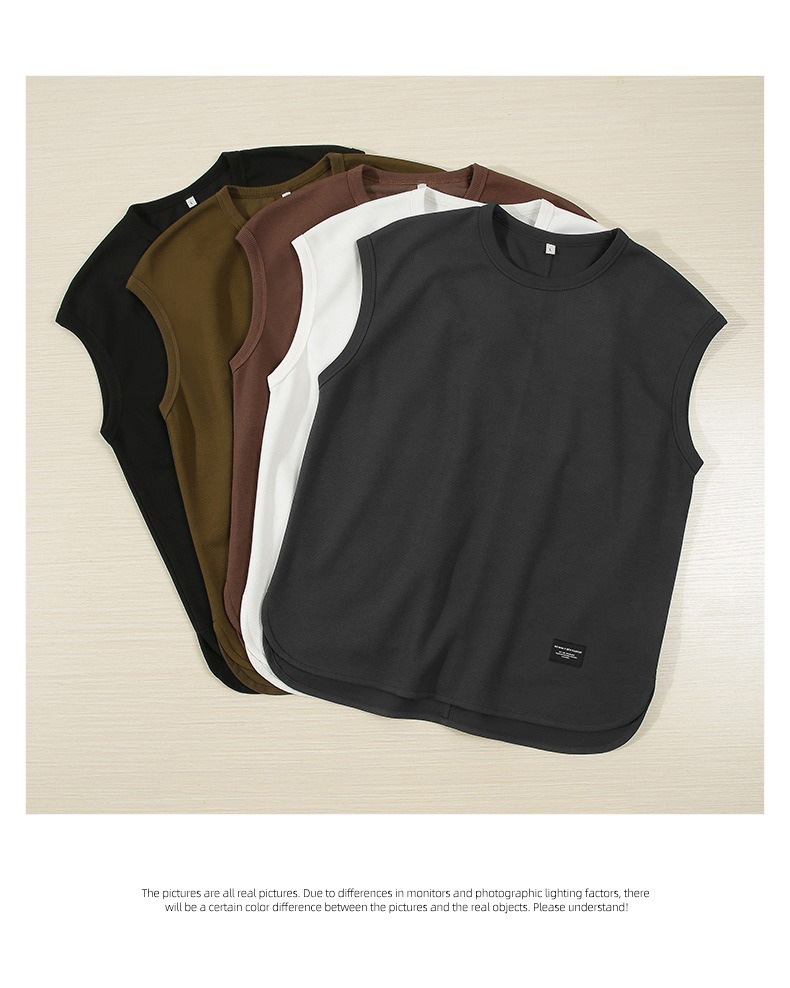 Men's 220gsm Heavyweight Pique Tank Top - Oversized Japanese Retro Streetwear, Breathable Cotton Unisex Design for Urban Fashion & Gym