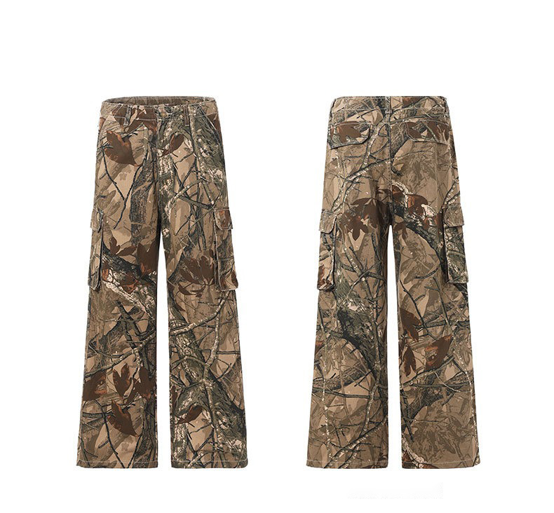 Mens Trendy Baggy Camo Jeans American Retro Streetwear Loose Fit Outdoor Casual Pants Urban Fashion Branch Design New Look