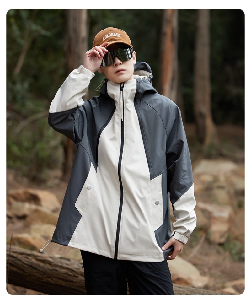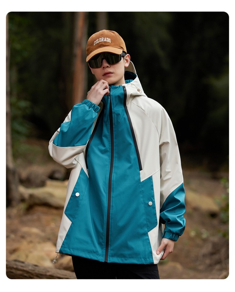 Outdoor Jacket - Waterproof Windproof Lightweight Hiking Coat with Color-Block Design & Multi-Pocket
